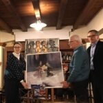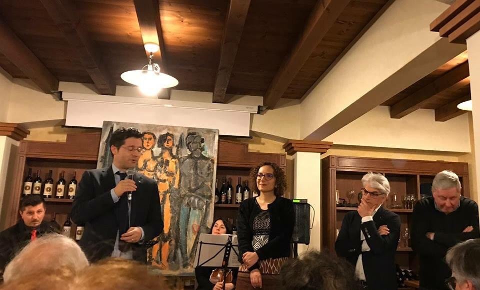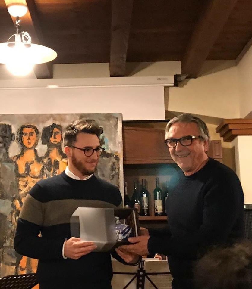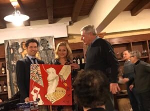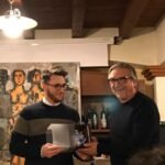 Un altro momento: in dono la “Grappa d’Artista” della Premiata Distilleria Pagura, sponsor storico del progetto.