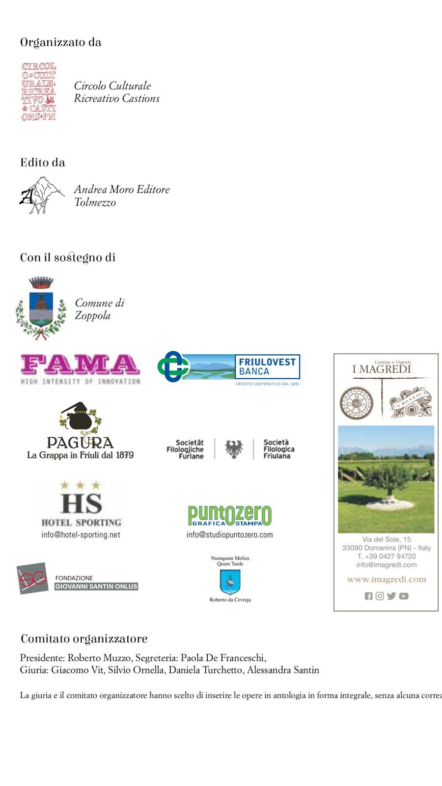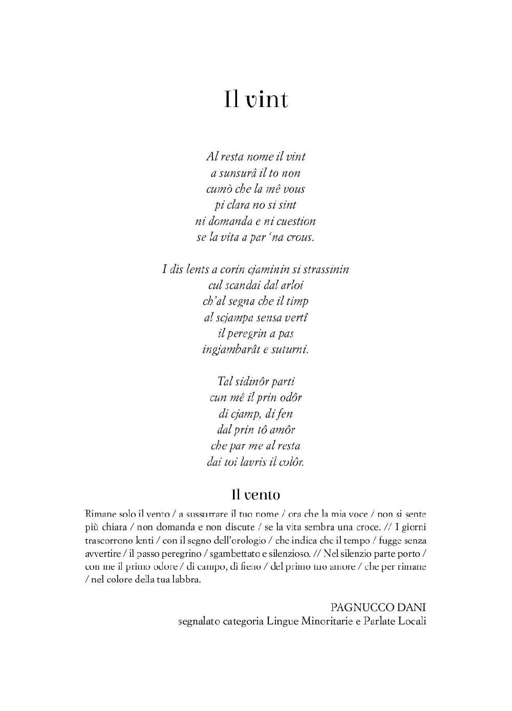 Ma se volete conoscere la graduatoria e gustare l’ascolto di testi intensi, accompagnati da buona musica e da buon vino, non mancate alla serata di premiazione il 15 Febbraio, ore 20.30 alla Cantina “I Magredi” di Domanins.