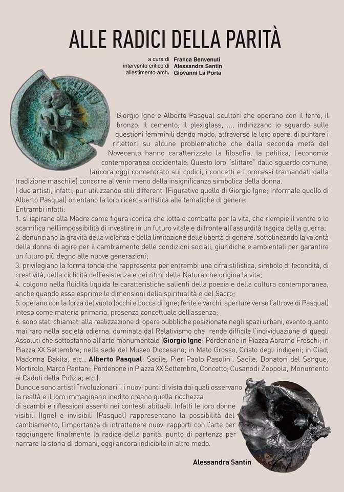 I due artisti, come scrive Alessandra Santin nel suo testo critico, “…pur utilizzando stili differenti (Figurativo quello di Giorgio Igne; Informale quello di Alberto Pasqual), orientano la loro ricerca artistica verso le tematiche di genere… Denunciano la gravità della violenza e della limitazione delle libertà della donna di agire per il cambiamento delle condizioni sociali, giuridiche e ambientali per garantire un futuro più degno alle nuove generazioni…