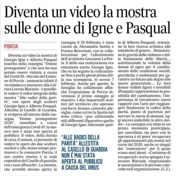Le loro donne, visibili quelle di Igne, invisibili quelle di Pasqual, rappresentano la possibilità del cambiamento, l’importanza di intrattenere nuovi rapporti con l’arte per raggiungere finalmente la radice della parità punto di partenza per narrare la storia di domani, oggi ancora indicibile in altro modo”.