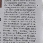 Venerdì 1 marzo, alle 18.00, nel Casello di Guardia di Porcia. con l’inaugurazione della mostra “Con altri occhi” del pittore e scultore Carlo Fontanella, si aprirà la rassegna Donne Protagoniste. La mostra, curata da Franca Benvenuti con il contributo critico di Alessandra Santin, è stata realizzata dall’Assessorato alla Cultura di Porcia in collaborazione con Fondazione Giovanni Santin, Pro Porcia, In prima persona – uomini contro la violenza sulle donne.