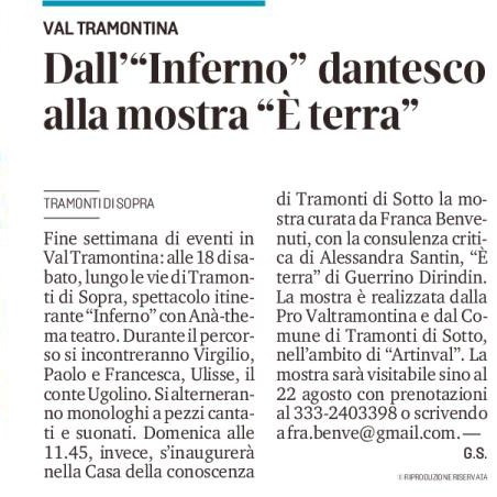 4 luglio 2021 Casa della Conoscenza a Tramonti di Sotto, inaugurazione della mostra personale di Guerrino Dirindin, È TERRA!