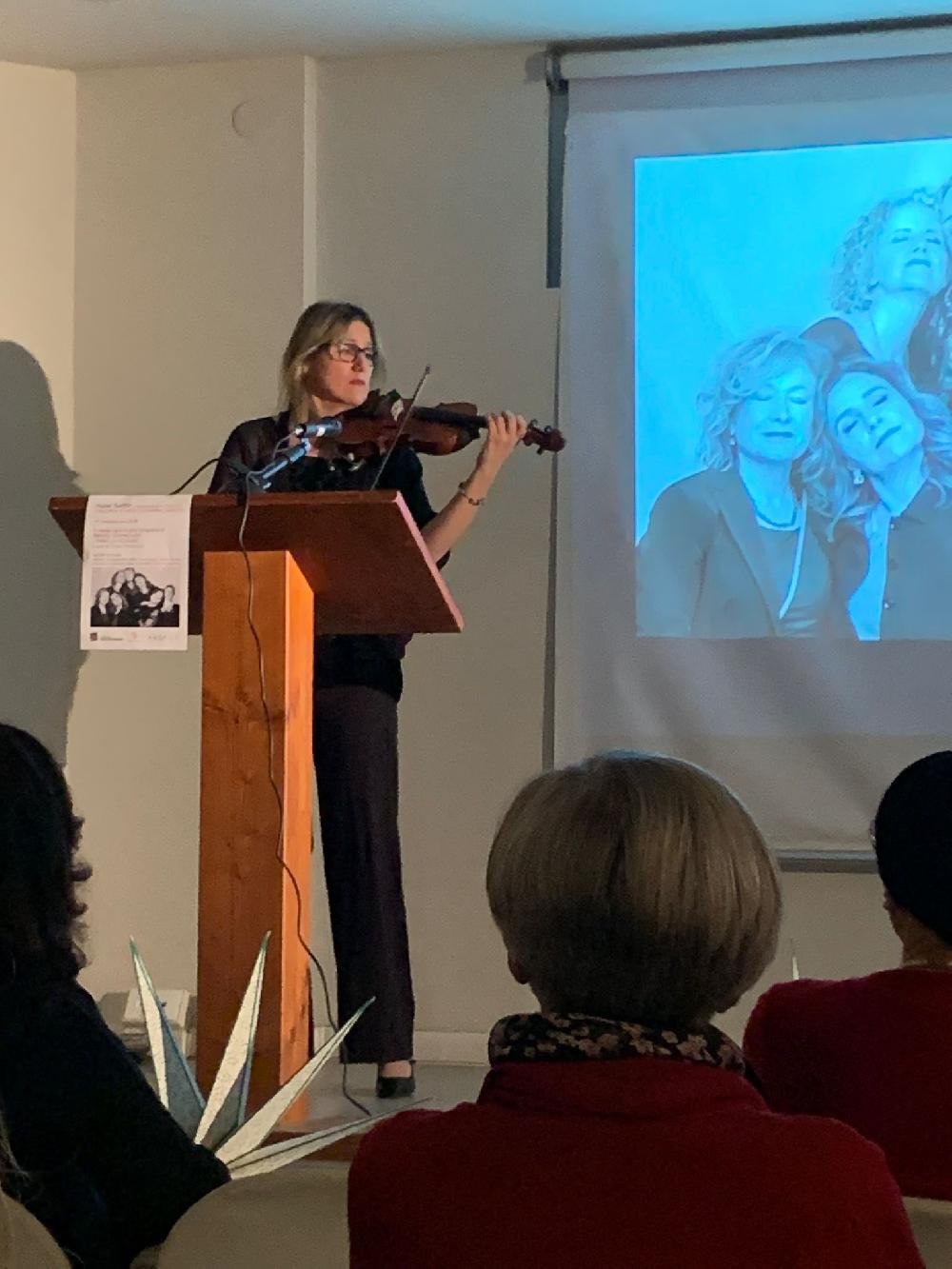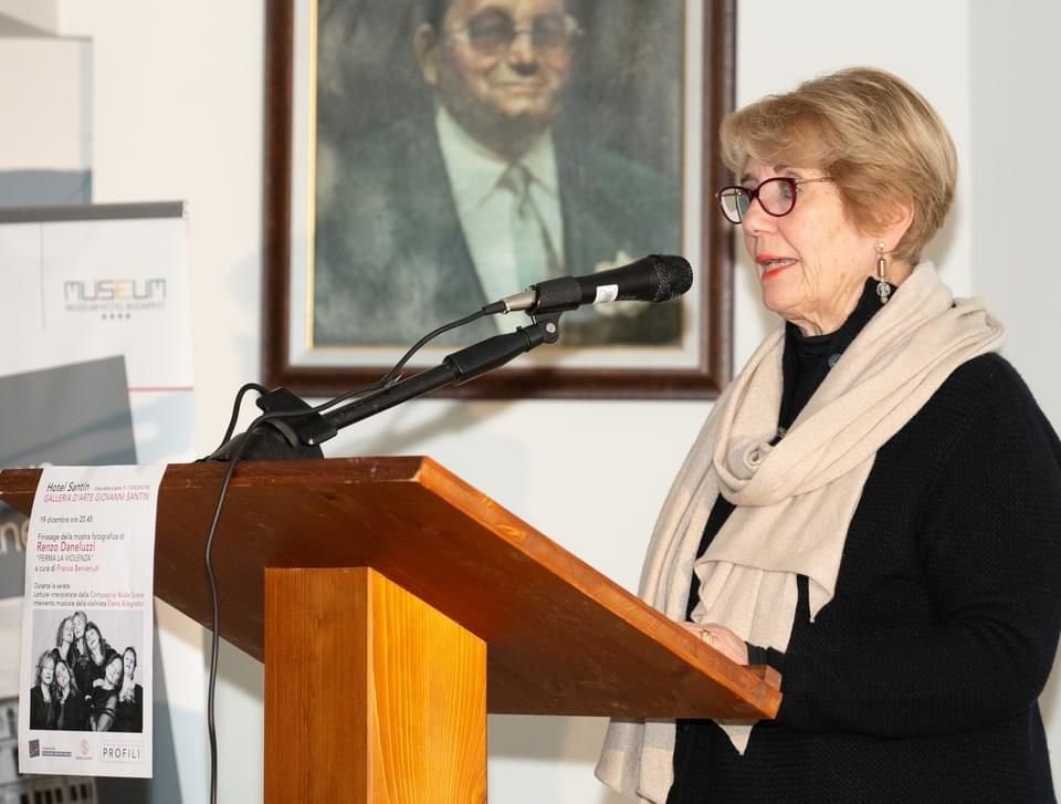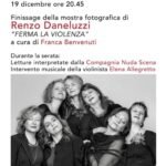Ieri sera nella Galleria Santin si è svolto il finissage della mostra fotografica “Ferma la Violenza” di Renzo Daneluzzi, curata da Franca Benvenuti.  La serata ha regalato a tutti i presenti forti emozioni per le letture interpretate dalla Compagnia Nuda Scena e i pezzi musicali eseguiti dalla violinista Elena Allegretto. Sono state presentate alcune storie di donne che hanno avuto un ruolo determinante nella vita di tutti noi e che hanno rivoluzionato concetti, ambiti, approcci ad esclusivo appannaggio del mondo maschile.  La Compagnia Nuda Scena negli ultimi anni ha realizzato un progetto molto interessante, Vite Controcorrente, con il fine di portare alla luce vite sconosciute, nomi ignoti ai più perché, sapere  che certi mutamenti sono avvenuti grazie a capacità femminili in tempi immemori, rappresenta la giusta sintesi per parlare al femminile. Tra i testi letti e i brani musicali eseguiti al violino si è creata un’alchimia veramente speciale che tutti i presenti hanno potuto percepire. Grazie a Renzo.