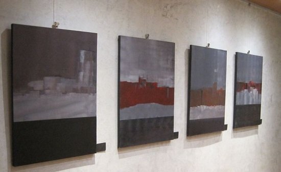 Nella serie di tele in cui le tecniche dell’Astrattismo geometrico sembrano invece prendere il sopravvento, certe linee dell’orizzonte si ripresentano nella loro portanza, riconducendo la visione alla dimensione più nota del paesaggio tradizionale, ma la scelta dell’angolo prospettico muta la relazione con la terra dell’uomo. Se gli orizzonti si abbassano ecco la prospettiva aerea condurre il nostro sguardo verso l’infinito e oltre; se invece l’orizzonte appare alto nello spazio dell’opera, il senso del limite si rivela in tutta la sua potente valenza costrittiva. Le forme dell’aria, Shapes ritmiche e pervasive, rimettono in campo il senso “materico” sia nel colore che nella massa, stabilizzando contesti, ostacoli, indicazioni di meta, sensi di pace possibile, indicazioni di viaggi inattesi.