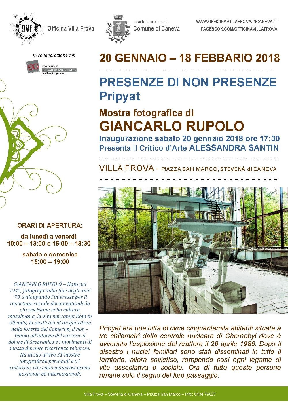 Dal 20 gennaio al 18 febbraio verrà allestita a Villa Frova una mostra fotografica a cura di GIANCARLO RUPOLO dal titolo “PRESENZE DI NON PRESENZE” – Pripyat.
