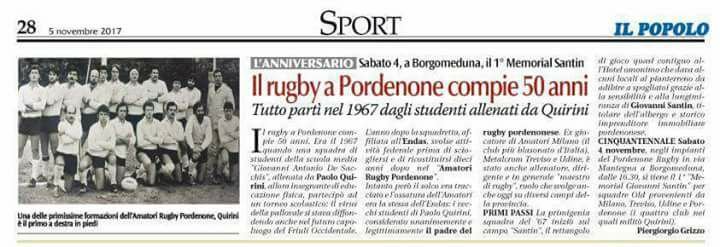 Sabato 4 novembre si é tenuto “il primo Memorial Giovanni Santin” Torneo Rugby di Pordenone. Condividiamo con voi le foto scattate durante la conferenza stampa e l’evento.