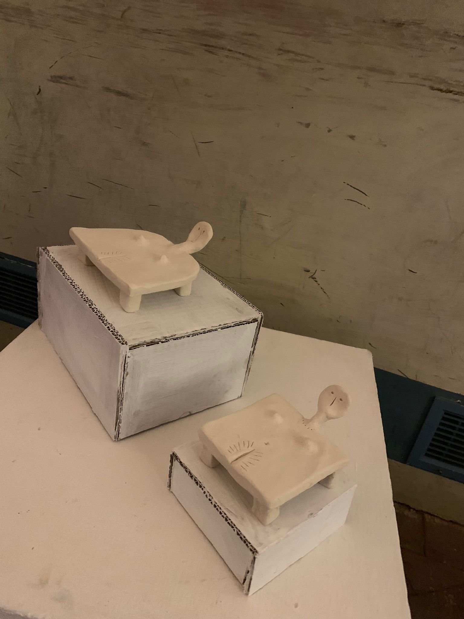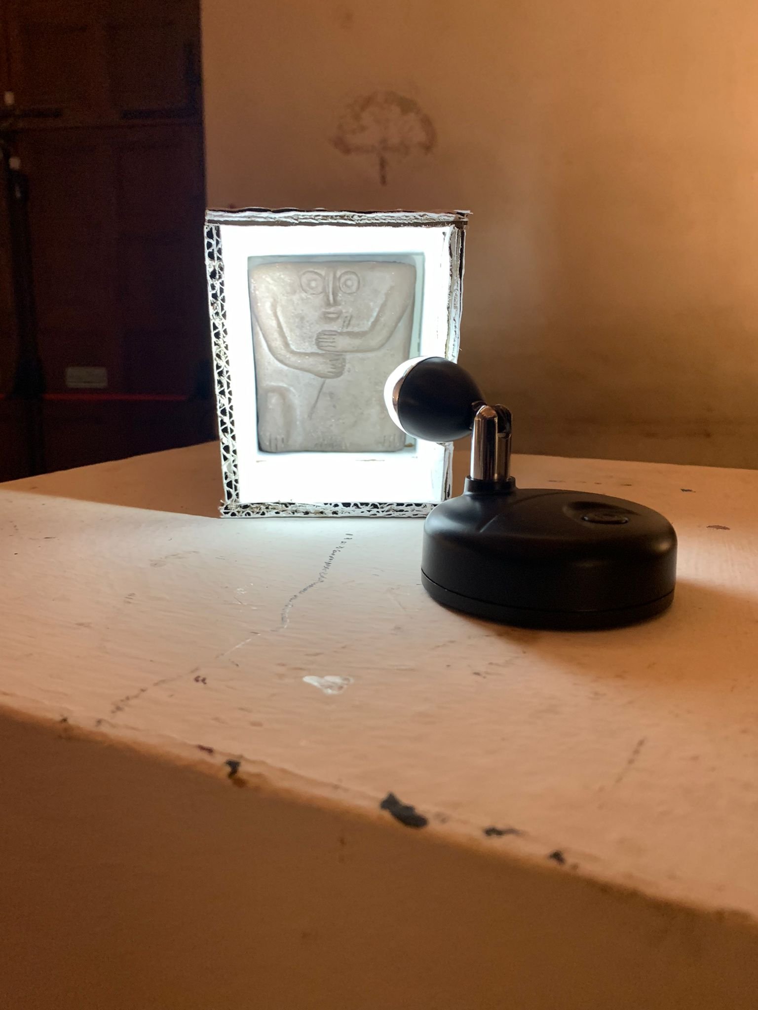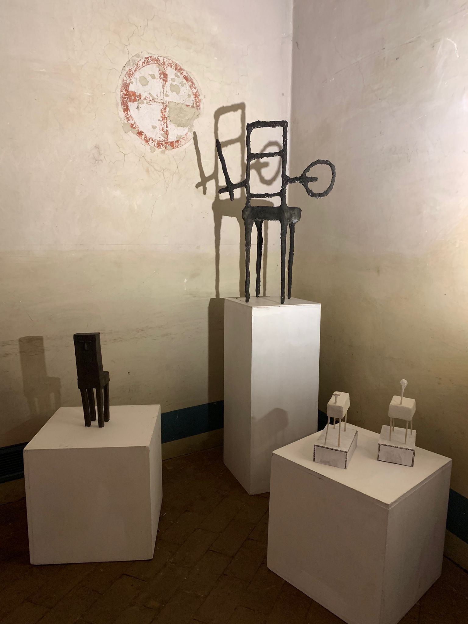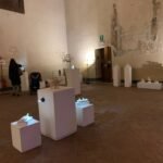 In/certi dei l’artista si sofferma con ostinazione, indaga il loro volto piatto e neutrale, si concentra sui copricapo: percorre aureole luminose, allunga corna sottili e arrotonda turbanti. A volte li incorona con fragili ghirlande provvisorie. Tutto ubbidisce a funzioni misteriose che soddisfano bisogni d’infanzia: allontanare i vuoti, inventare giochi proibiti, ignorare il futuro, difendere spazi esclusivi, godere il presente. Gli dei in/certi di Fabio Ferretti De Virgelis non sempre fanno un buon lavoro, ma si impegnano e all’artista tanto basta. Sono disponibili e presenti. Bianchi, leggeri, numerosi. Sono piccoli e si lasciano riprodurre accogliendo dubbi, errori e indugi.