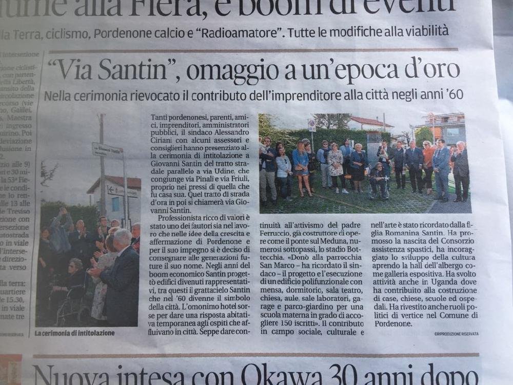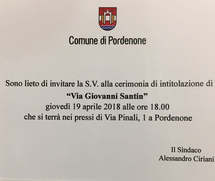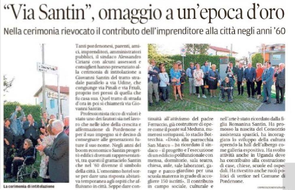 Pordenone: via Giovanni Santin. La nuova strada è stata intitolata all’imprenditore che ha contribuito al cambiamento e alla modernizzazione della città, alla promozione della Cultura e della valorizzazione sociale.