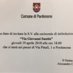INTESTAZIONE DELLA VIA GIOVANNI SANTIN A PORDENONE