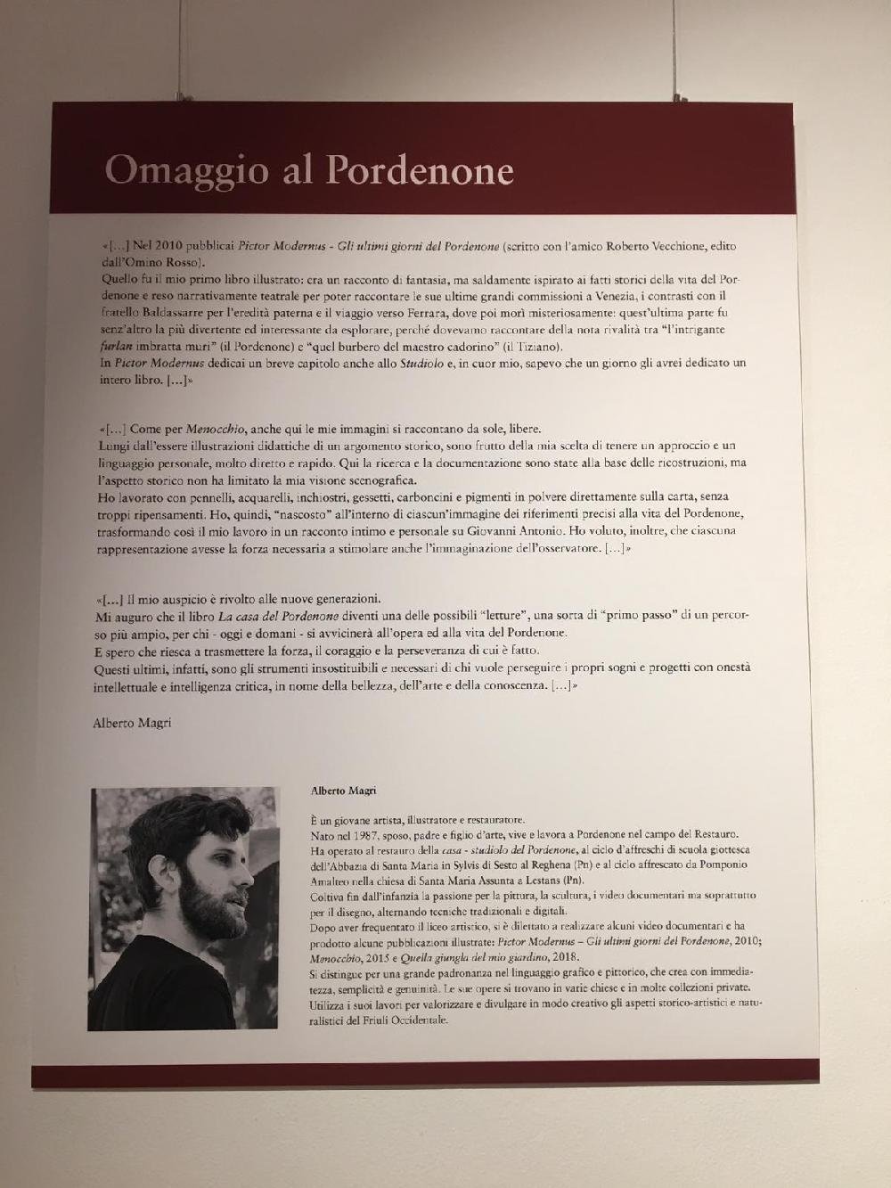 E’ un’opera multidisciplinare. Nella prima parte l’Autore narra la vita del Pordenone, col linguaggio dell’illustrazione, attento alla persona, alla sua creatività e al contesto storico in cui è vissuto. Un viaggio nella sua dimora, nella città del suo tempo, attraverso l’occhio dell’artista.