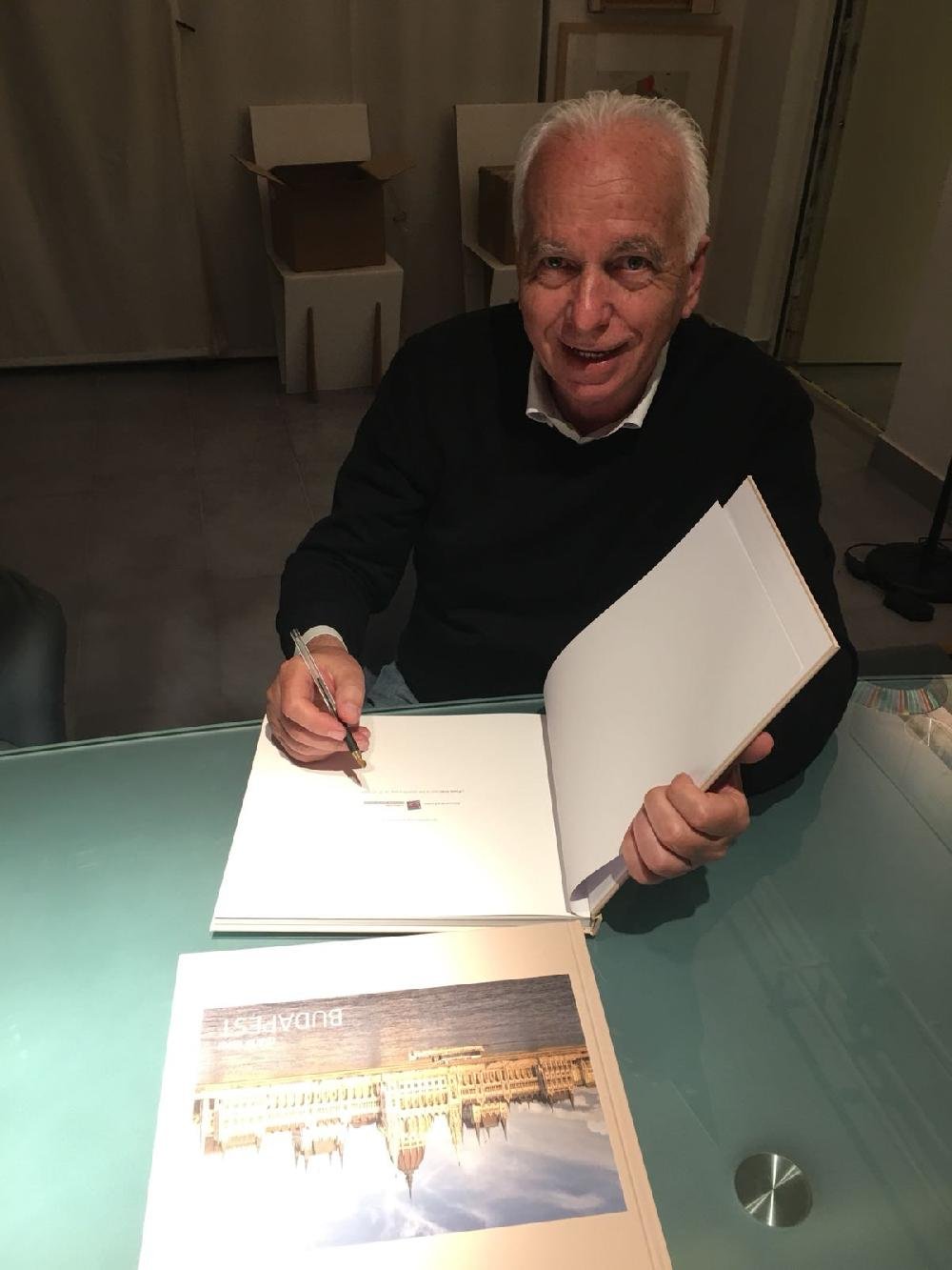 Mario Vidor firma il catalogo fotografico di Budapest.