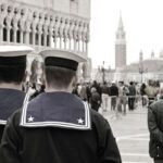 Lo “Scherzo” documenta uno degli eventi che rendono questa città famosa nel mondo, il Carnevale con le maschere del Settecento i cui costumi di raso elegante, le trine, i pizzi e le acconciature rappresentano un’indiscutibile cifra stilistica del luogo, con i turisti che si accalcano in Piazza S. Marco, giocano con i colombi, seguono disordinati la propria Guida ascoltando le sue indicazioni, tutti vicini per il timore di smarrirsi nei labirinti affollati.