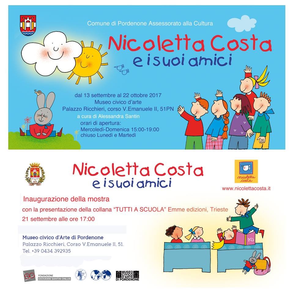 La Fondazione Giovanni Santin Onlus ha contribuito alla realizzazione della mostra “Nicoletta Costa e i suoi amici” . Museo civico Ricchieri. Pordenone. Offrire opportunità di crescita alle nuove generazioni è uno degli obiettivi principali della Fondazione. Complimenti a Nicoletta Costa una delle più note e apprezzate illustratrici e scrittrici dei libri per l’infanzia.
