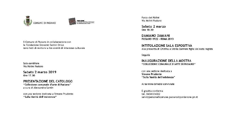 Sabato 2 marzo alle ore 17.30 nella  Sala Consiliare del Comune di Pasiano, via Molini