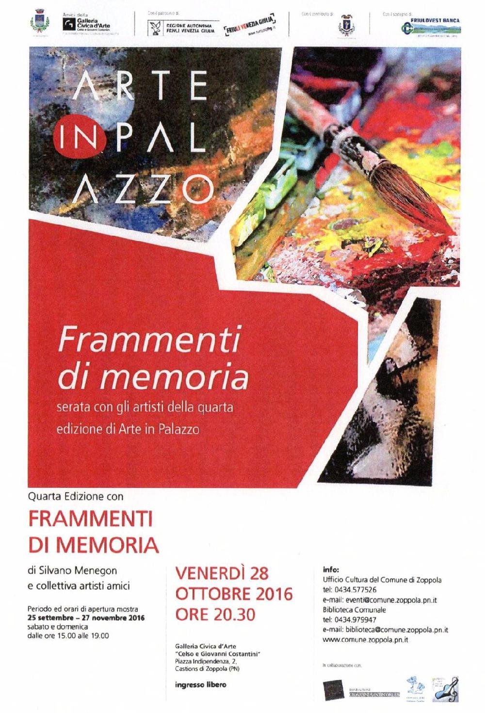 Con il titolo Frammenti di Memoria di Silvano Menegon e collettiva di artisti locali é stata ospitata la mostra nella Galleria Civica d’arte a Castions di Zoppola.(PN)
