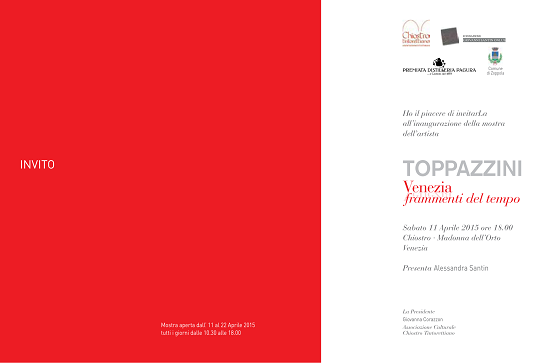 La Fondazione Giovanni Santin Onlus ha dato il suo sostegno alla mostra di Toppazzini, “Venezia Frammenti del Tempo” , con curatela di Alessandra Santin, che si è svolta presso il chiostro della Madonna dell’Orto di Venezia dall’11 aprile 2015 al 22 Aprile 2015.