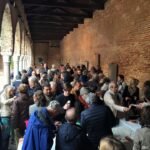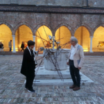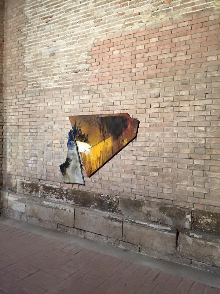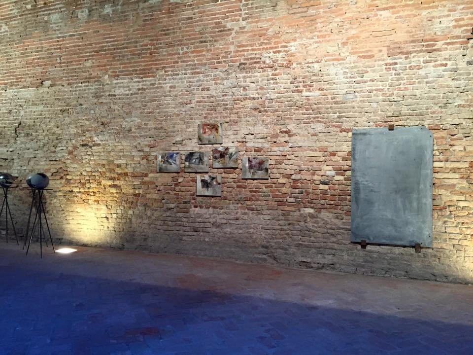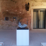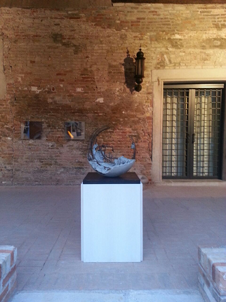 La sfera, in particolare, simbolo di una sintesi perfetta tra tensione ed equilibrio, ferita e sutura, ha assunto in sé questo compito di rivisitazione e superamento della distruzione, per esprimere una bellezza rinnovata e duratura. Posta nello spazio del Chiostro essa determina una direzione dello sguardo e la circolazione nello spazio. Orienta l’andamento di ciascuno nel luogo espositivo.