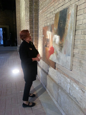 Angelo Toppazzini, nella cura dell’esposizione che definirei per certi aspetti Installazione, ricrea un legame di contatto che qualifica lo spazio e ripropone in esso il senso dell’armonia vitale. Il nostro sguardo è chiamato alla lettura in forma di canto, seguendo il susseguirsi delle opere come fossero onde, note di partiture musicali che riflettono i frammenti della Storia.
