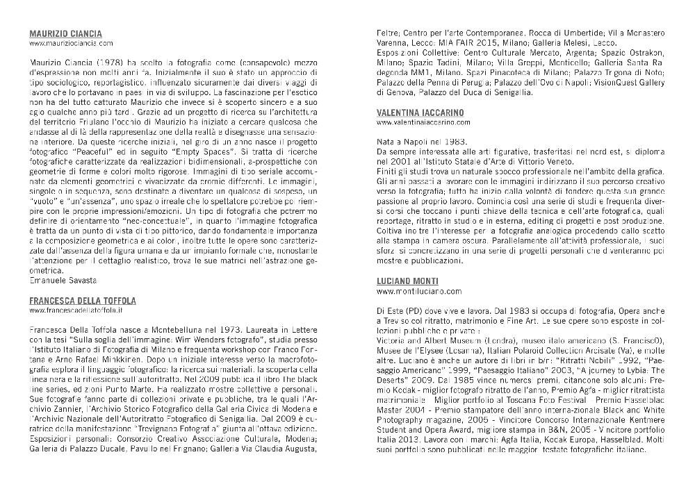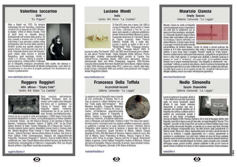 Auspicando ai sei artisti selezionati in questa XI edizione, una buona af-fluenza di pubblico e un augurio di importanti mostre future.