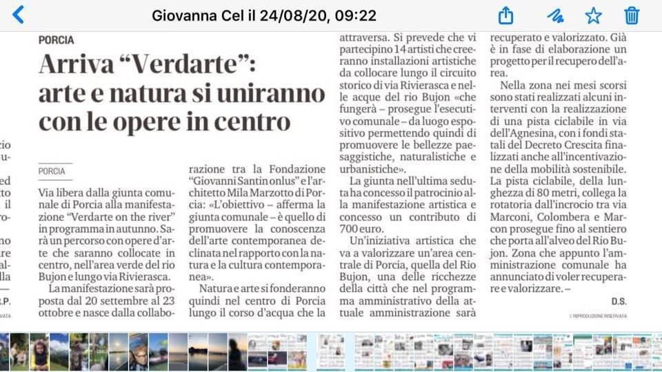 Inaugurata il 20 settembre 2020 a Porcia la rassegna VerdArte on the River.