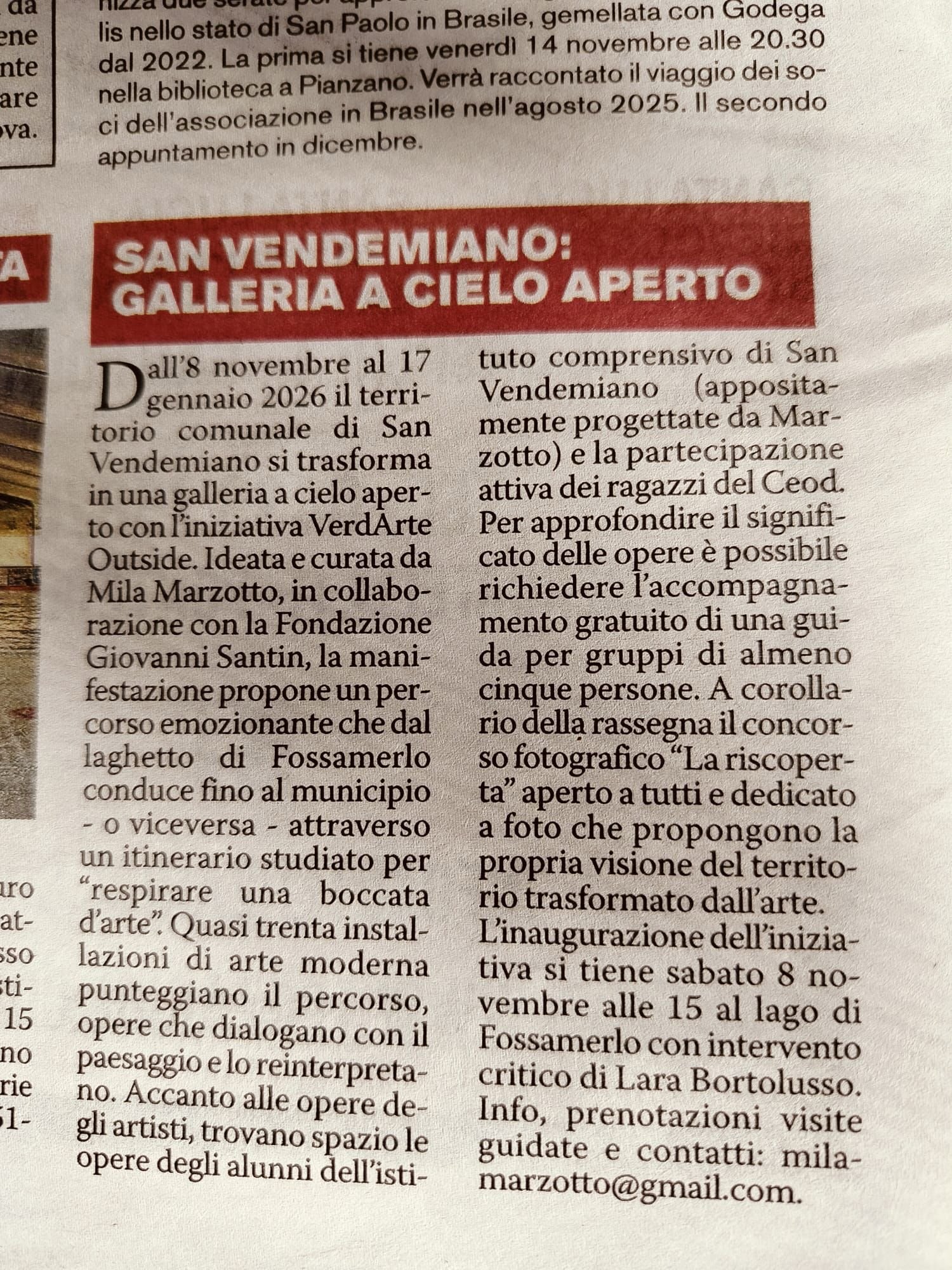 Verdarte nuova edizione 2025-2026 a cura di Mila Marzotto con il patrocinio del Comune di San Vendemiano e il coinvolgimento di numerosi artisti e delle scuola di ogni ordine e grado.