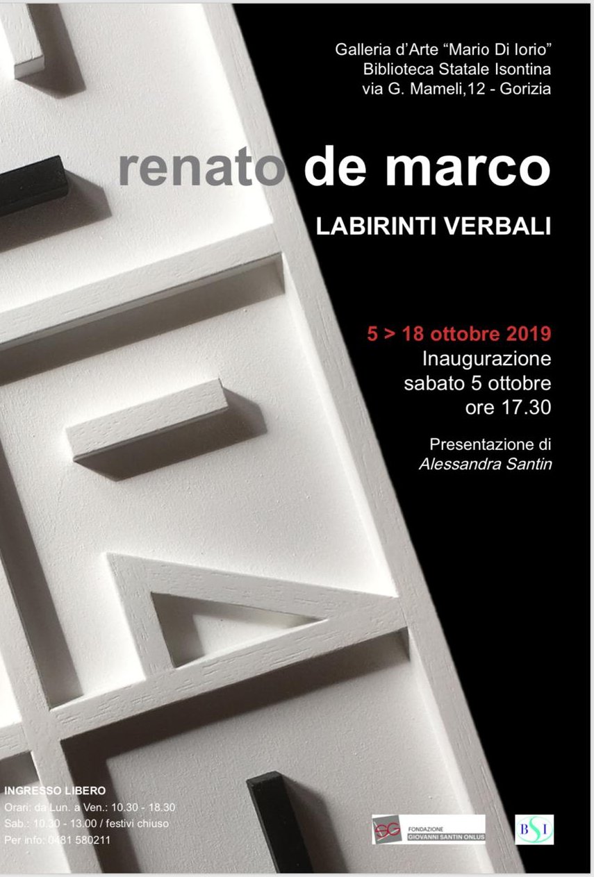RENATO DE MARCO LABIRINTI VERBALI Ott 5 RENATO DE MARCO LABIRINTI VERBALI 5 Ottobre, 2019 - 18 Ottobre, 2019