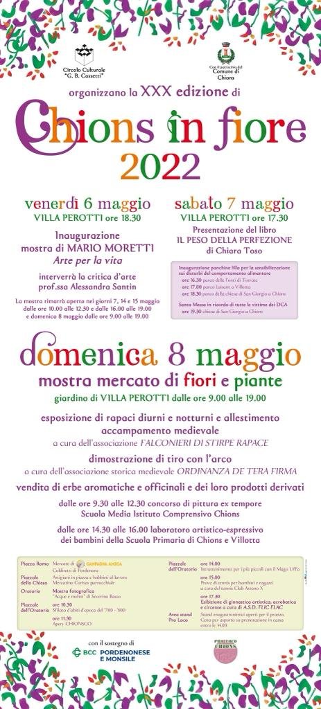 CHIONS IN FIORE 2022 – MOSTRA DI MARIO MORETTI – ARTE PER LA VITA Mag 30 CHIONS IN FIORE 2022 – MOSTRA DI MARIO MORETTI – ARTE PER LA VITA Tutto il giorno