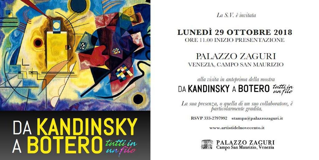 DA KANDINSKY A BOTERO DA NOVEMBRE A PALAZZO ZAGURI Ott 29 DA KANDINSKY A BOTERO DA NOVEMBRE A PALAZZO ZAGURI Tutto il giorno