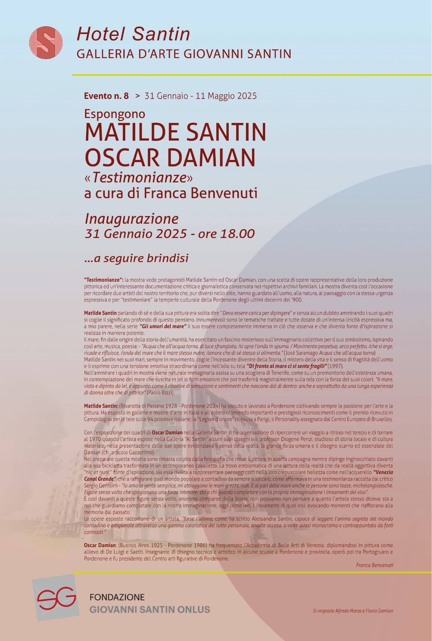 “TESTIMONIANZE” MATILDE SANTIN – OSCAR DAMIAN Gen 31 “TESTIMONIANZE” MATILDE SANTIN – OSCAR DAMIAN 31 Gennaio, 2025 - 11 Maggio, 2025