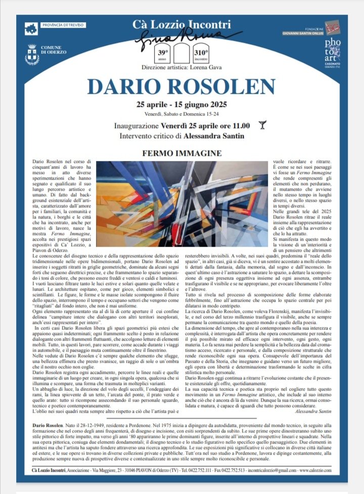 DARIO ROSOLEN – FERMO IMMAGINE Apr 25 DARIO ROSOLEN – FERMO IMMAGINE 25 Aprile, 2025 - 15 Giugno, 2025