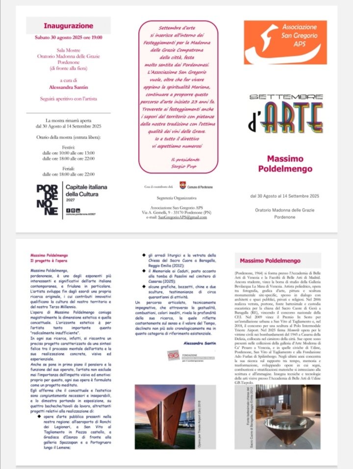 “Settembre d’arte” di Massimo Poldelmengo Ago 30 “Settembre d’arte” di Massimo Poldelmengo 30 Agosto, 2025 - 12 Settembre, 2025